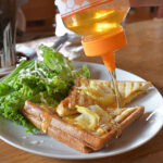 | フレンチトーストがジュワッとして美味! 犬連れ専用席があるのは気楽でうれしい |